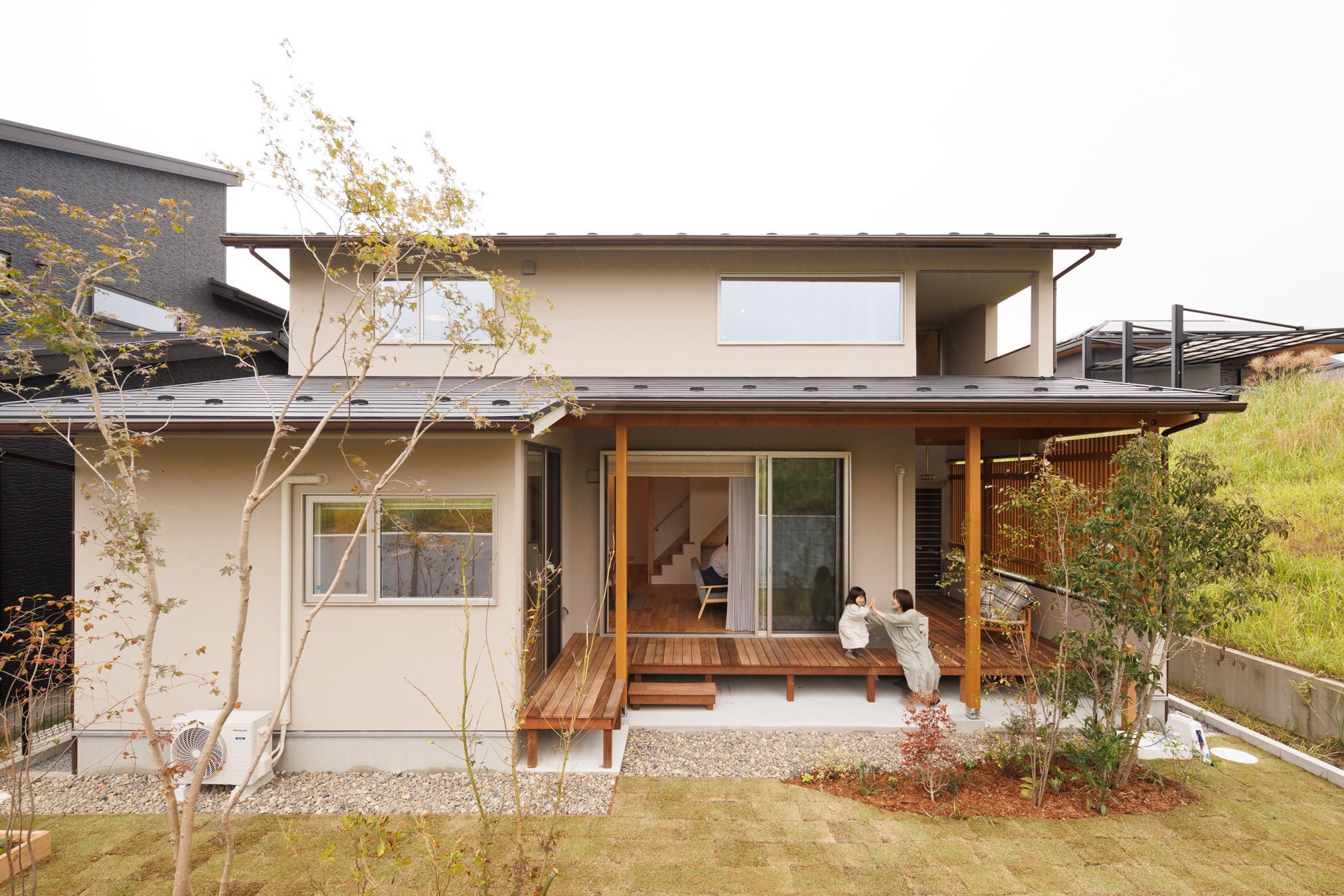深い軒が縁側を全てカバーするように設計しました。