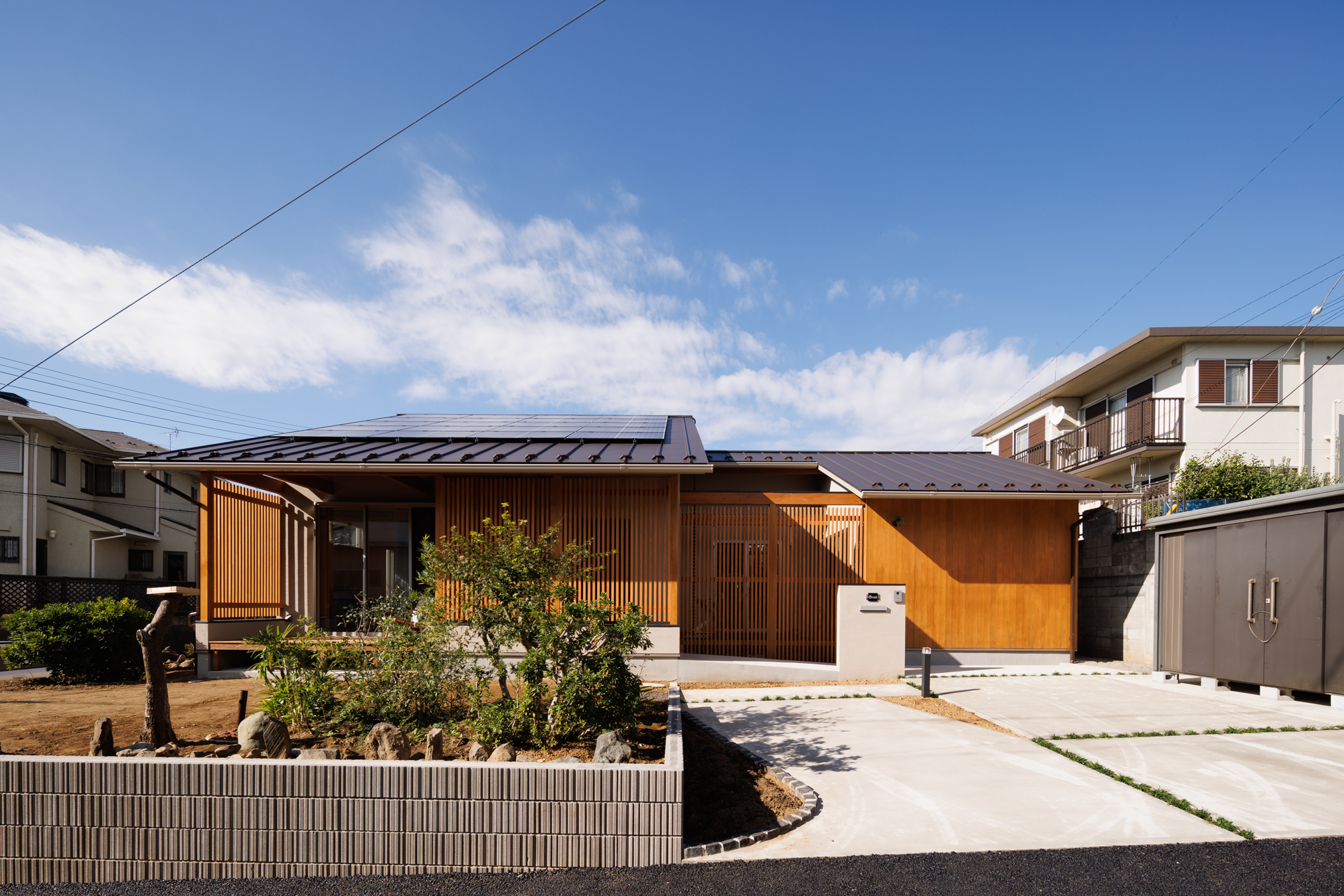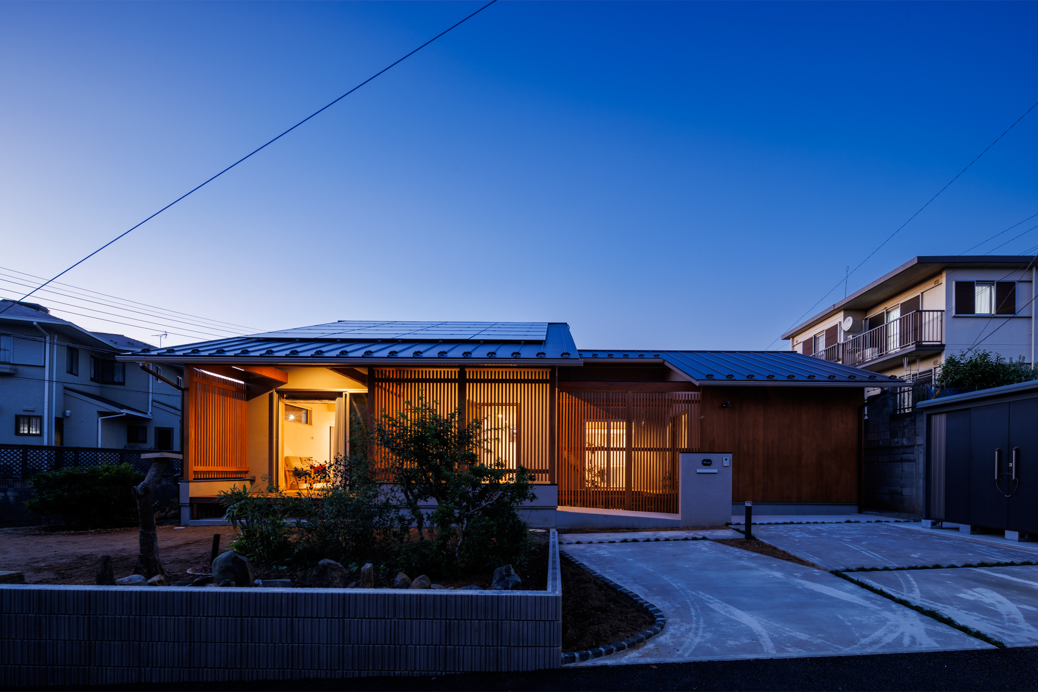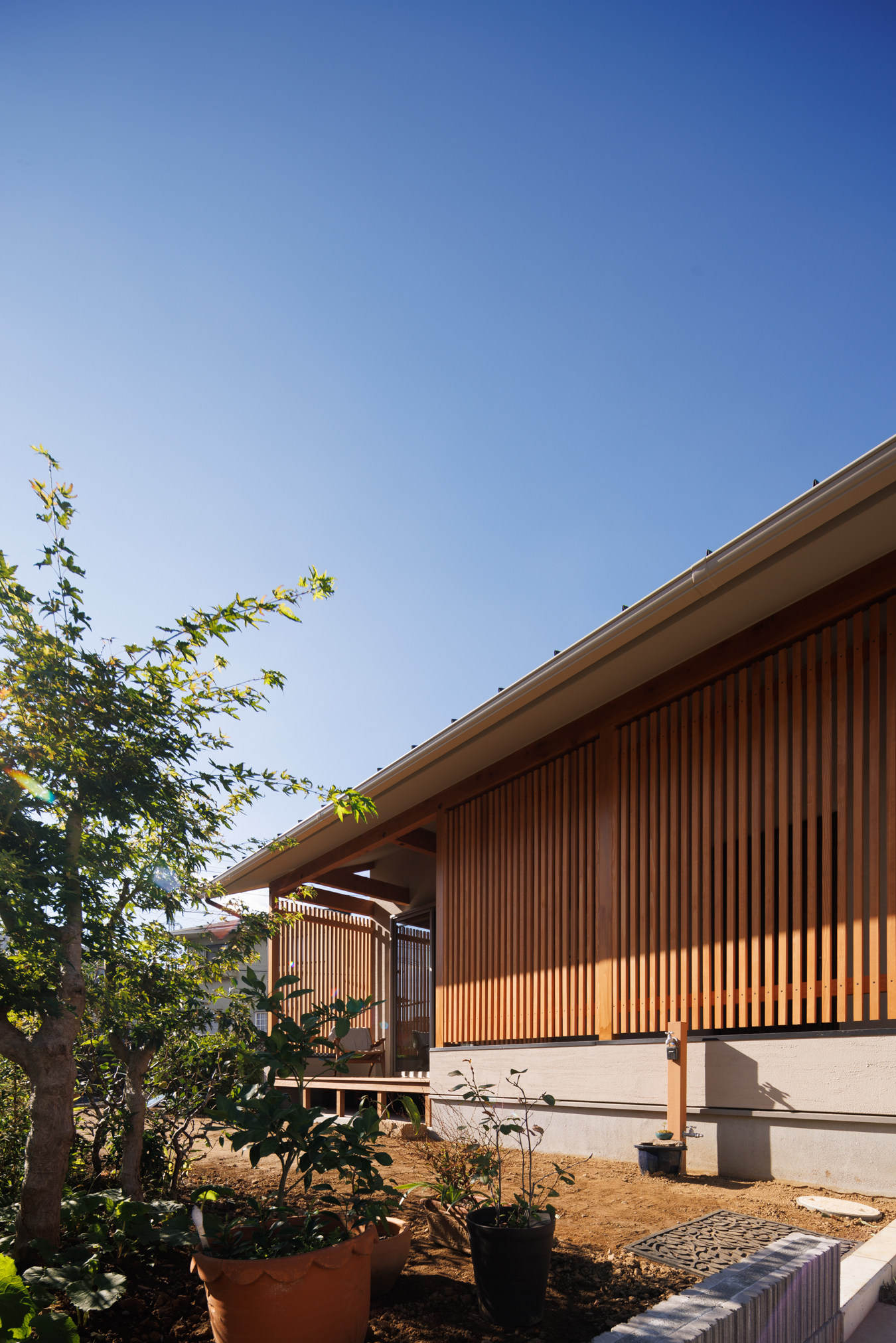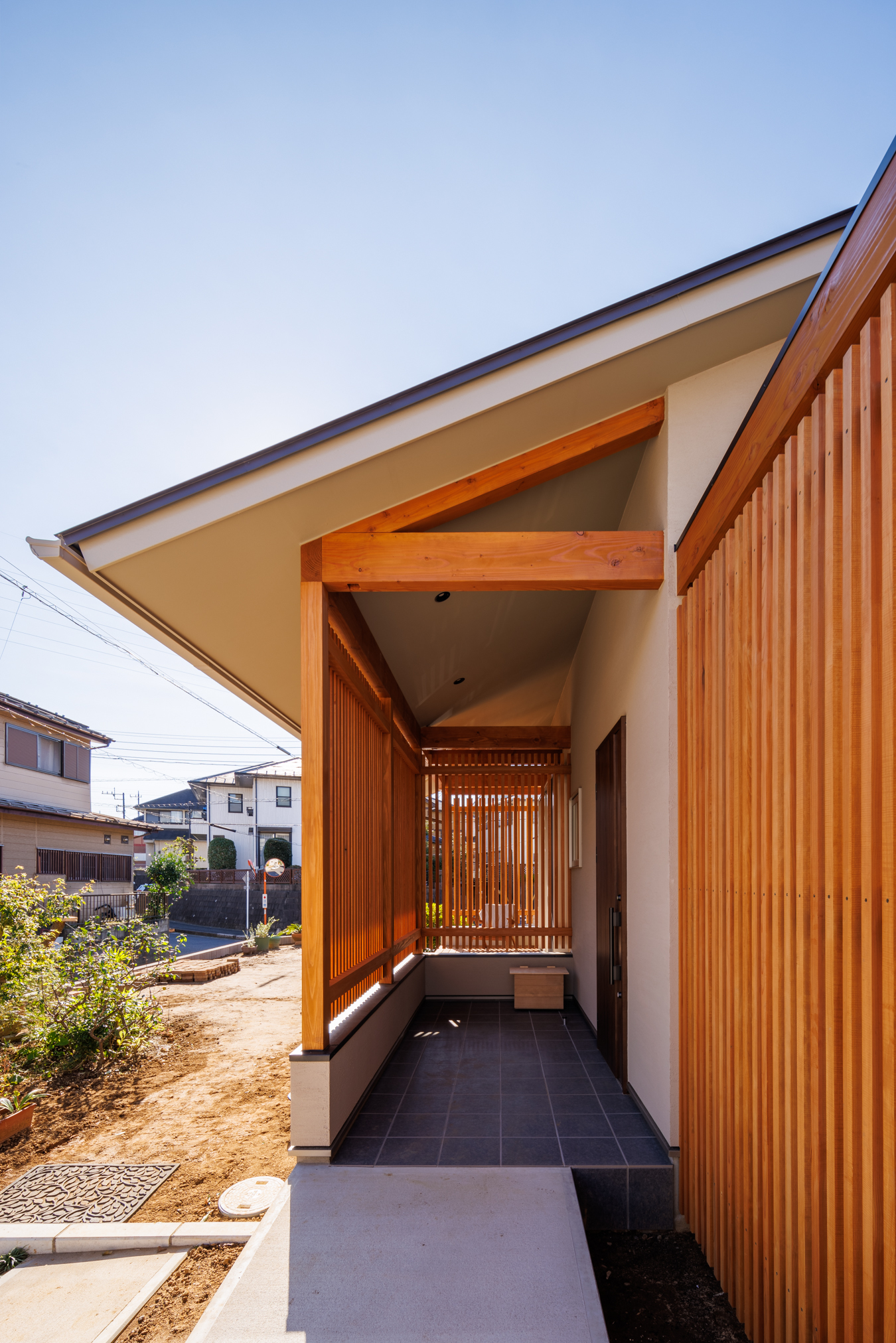 格子は、外と内を柔らかく分けてくれるので、中にいると圧迫感が和らぎますし、外からは中の様子はほとんど見えません。